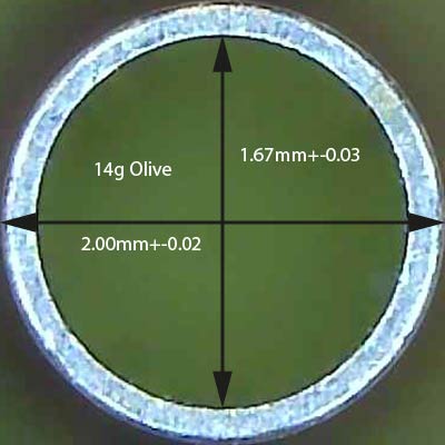 This is a series of photos of our standard dispensing tips taken with a microscope. The external O.D is measured with a micrometer and the I.D. has been calculated from the image.